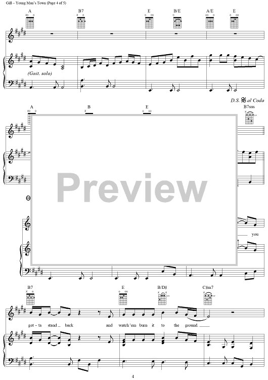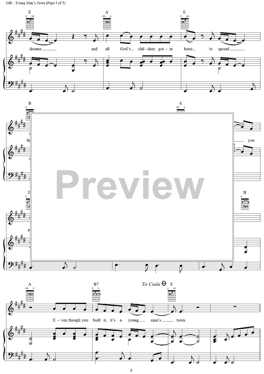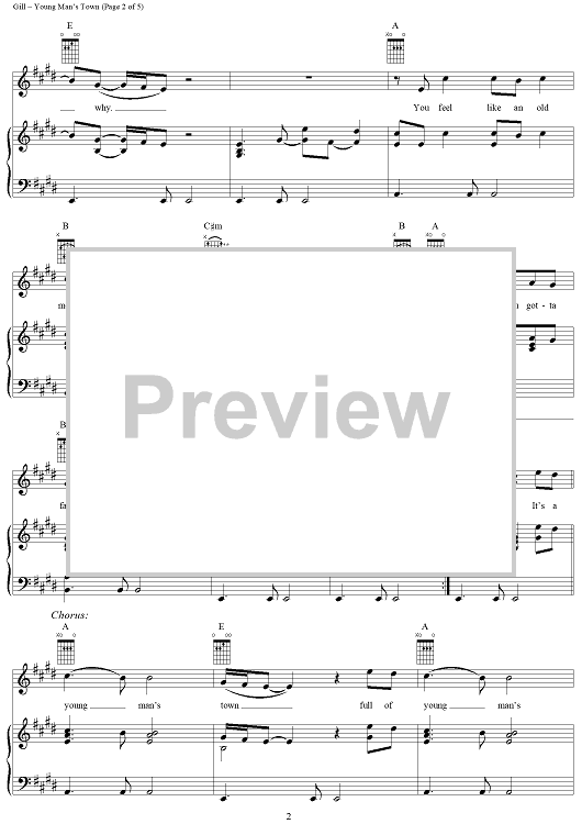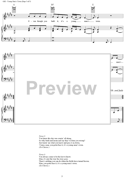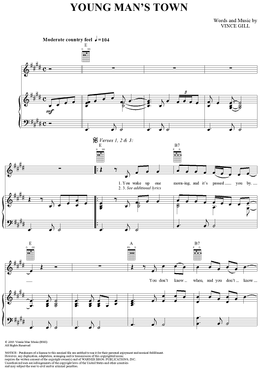 Digital Sheet Music for Young Man's Town by Vince Gill scored for Piano/Vocal/Chords; id:296956