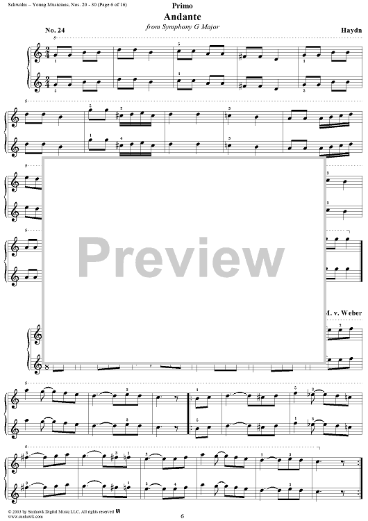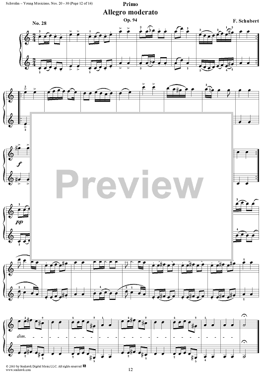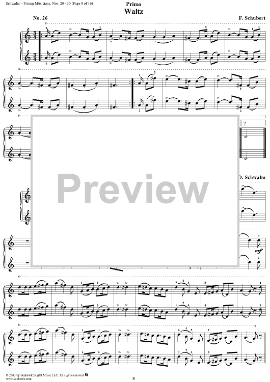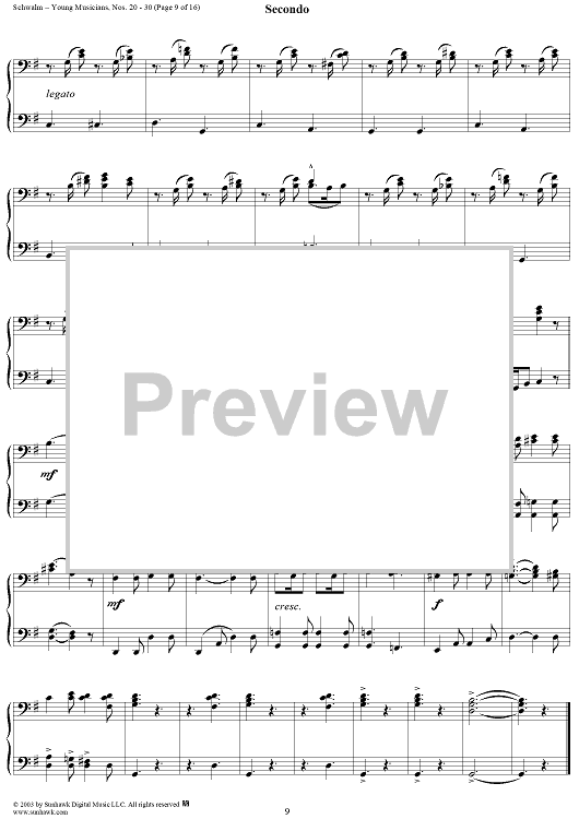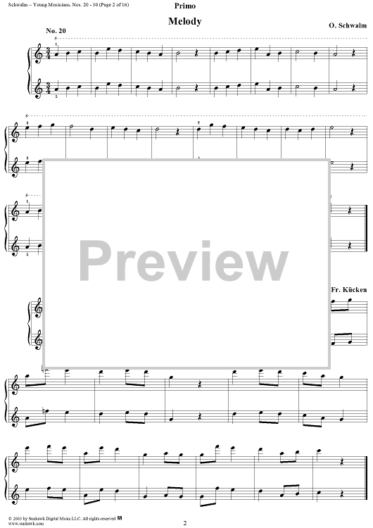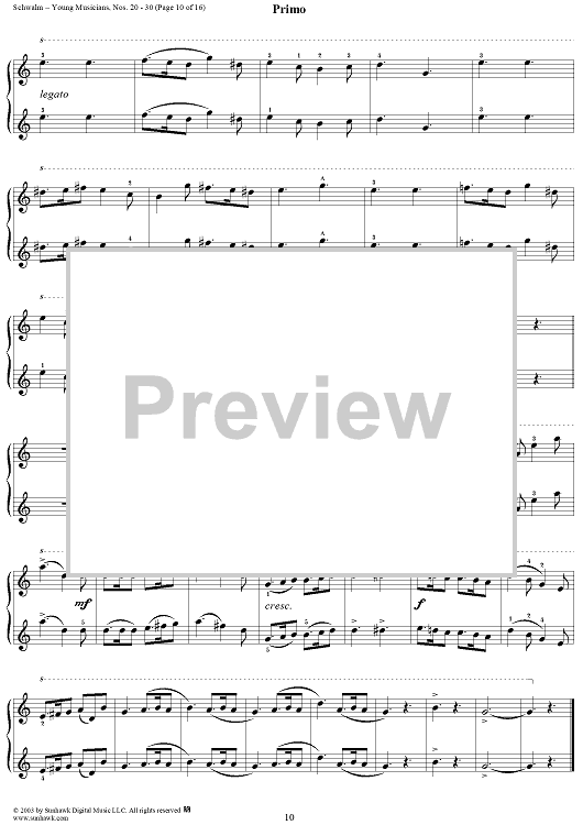 Digital Sheet Music for Young Musicians, Part 2, Nos. 20 - 30 by Oscar Schwalm scored for 1 Piano, 4 Hands; id:294997