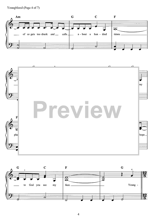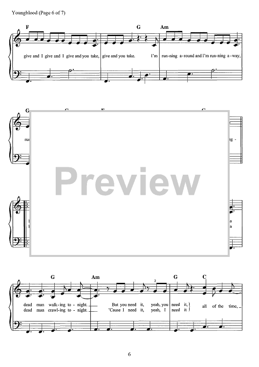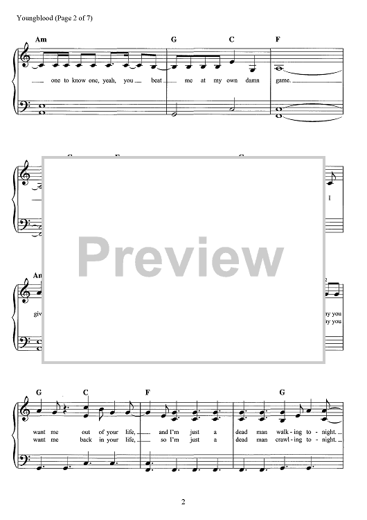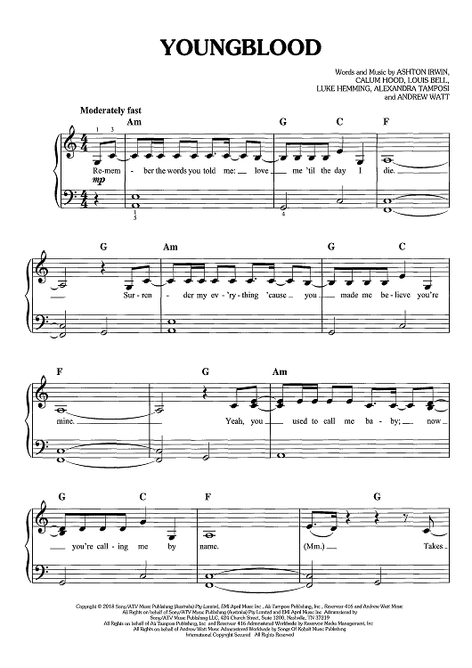Digital Sheet Music for Youngblood by Alexandra Tamposi, Ashton Irwin, 5 Seconds of Summer, Calum Hood, Luke Hemmings, Louis Bell, Andrew Watt scored for Easy Piano/Vocal/Chords; id:467718