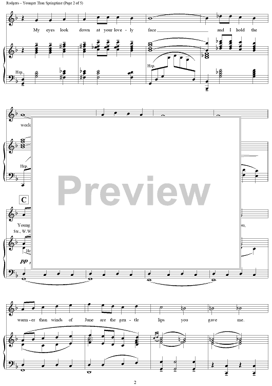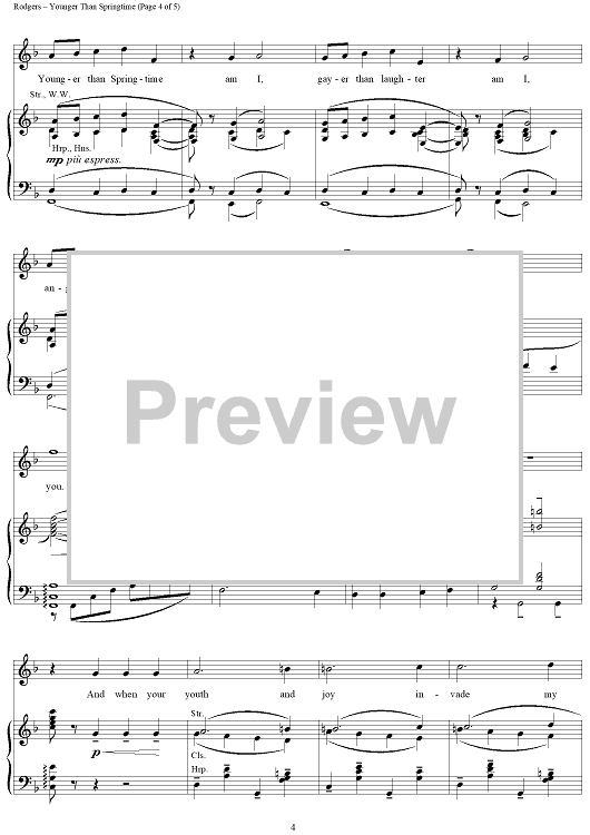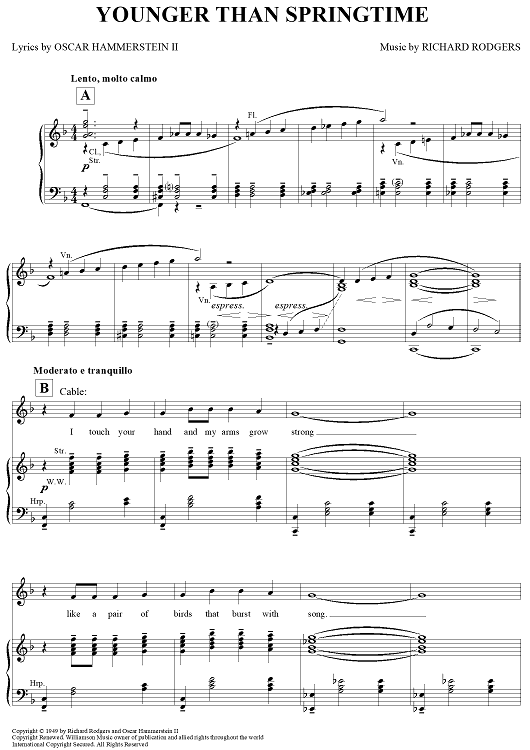 Digital Sheet Music for Younger Than Springtime by Richard Rodgers, Oscar Hammerstein II scored for Piano/Vocal; id:366331