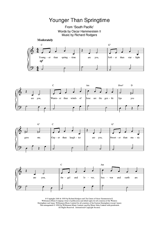 Digital Sheet Music for Younger Than Springtime by Richard Rodgers, Oscar Hammerstein II scored for Piano; id:378681