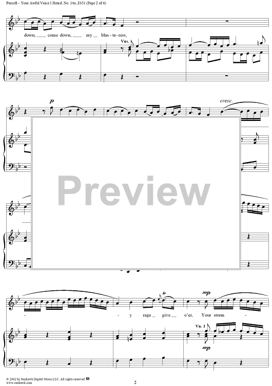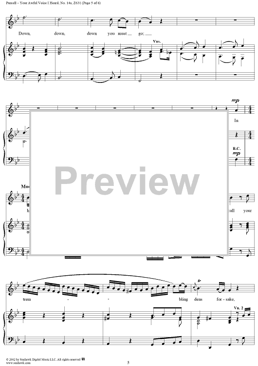 Digital Sheet Music for Your Awful Voice I Heard, from The Tempest, or the Enchanted Isle, Act 5 (incidental music) by Henry Purcell scored for Voice/Piano; id:254881