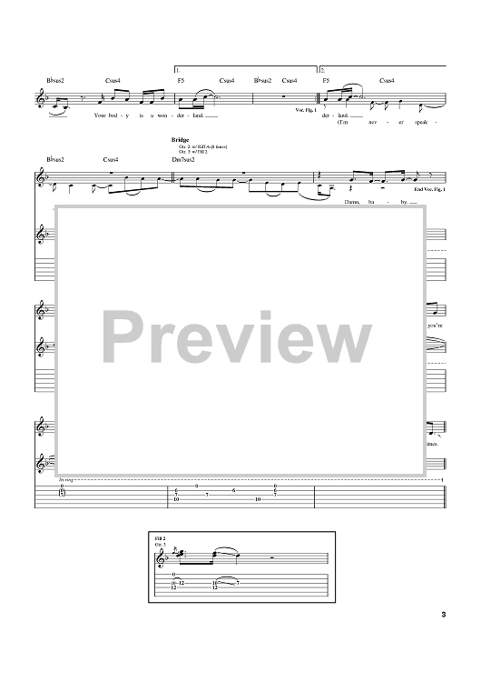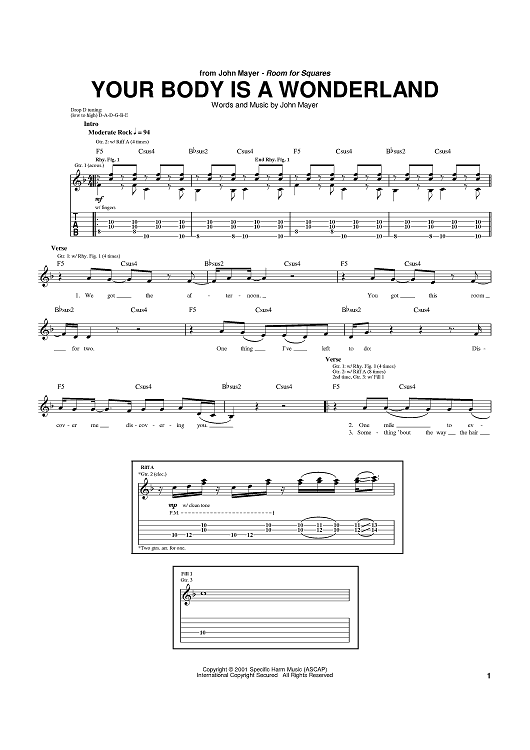 Digital Sheet Music for Your Body Is A Wonderland by John Mayer scored for Guitar Tab; id:371481