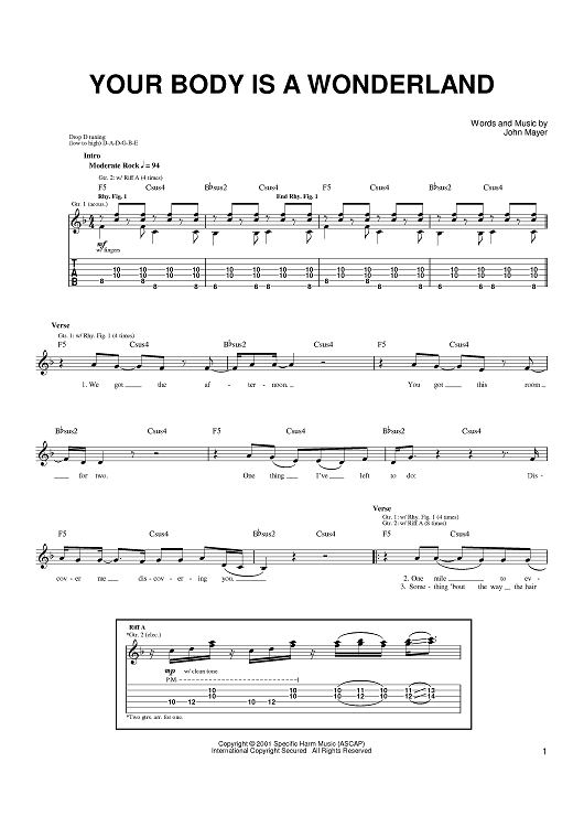 "Your Body Is A Wonderland" Sheet Music by John Mayer