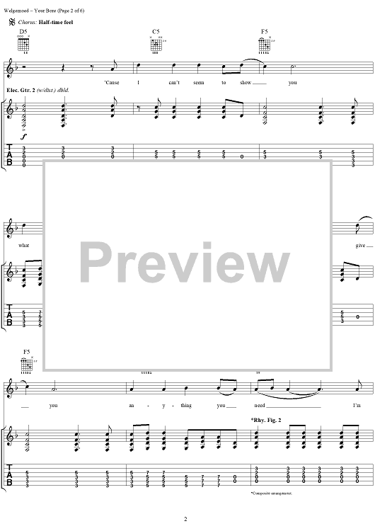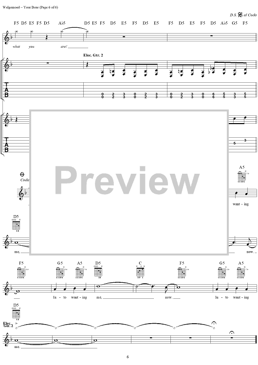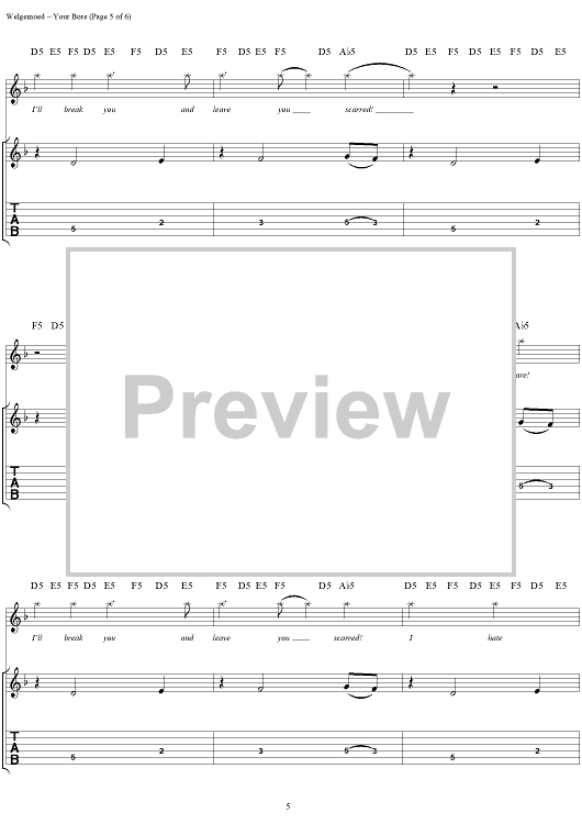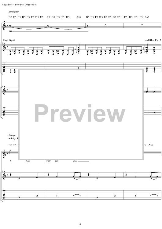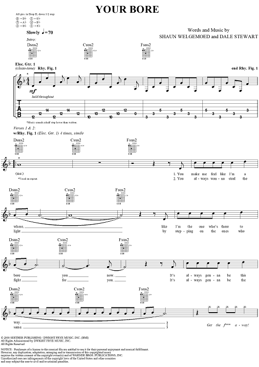 Digital Sheet Music for Your Bore by Seether, Shaun Welgemoed, Dale Stewart scored for Guitar Tab/Vocal; id:304402