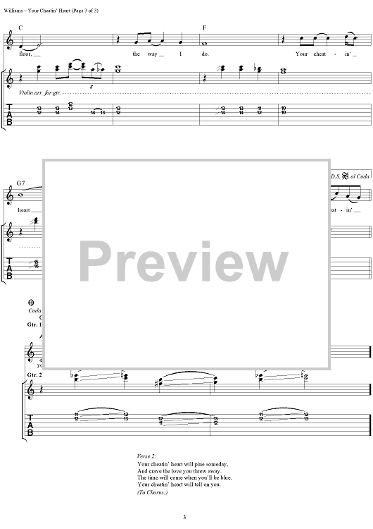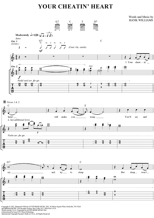 Digital Sheet Music for Your Cheatin' Heart by Hank Williams, Kenn Chipkin scored for Guitar Tab/Vocal; id:263860
