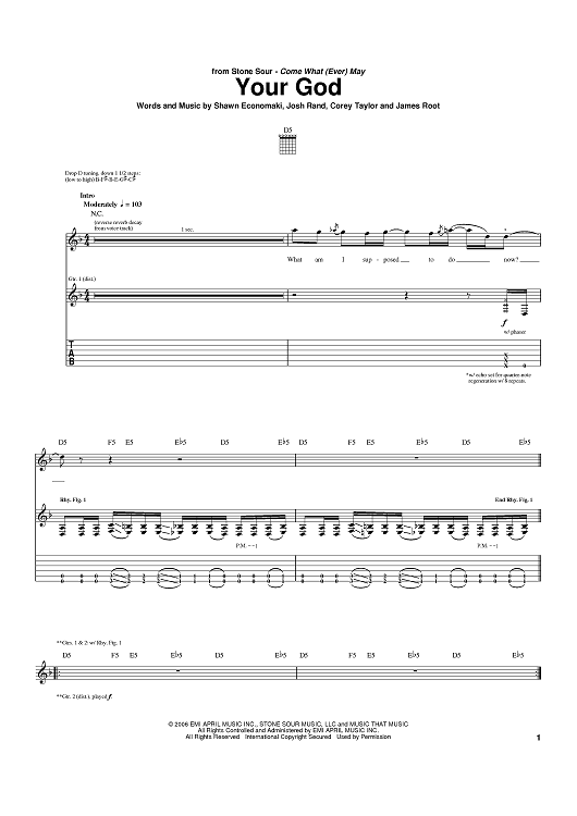 Digital Sheet Music for Your God by Shawn Economaki, Josh Rand, James Root, Stone Sour, Corey Taylor scored for Guitar Tab; id:395478
