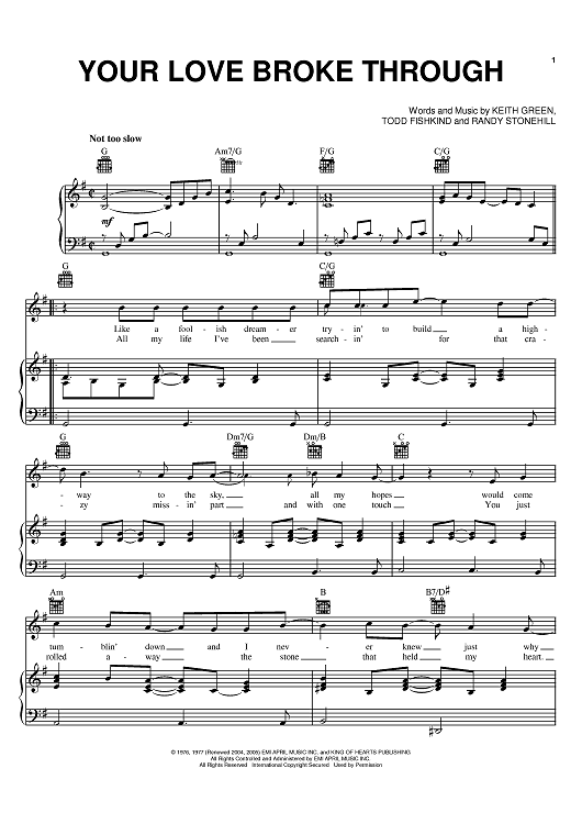 Digital Sheet Music for Your Love Broke Through by Keith Green, Randy Stonehill, Todd Fishkind scored for Piano/Vocal/Chords; id:371137