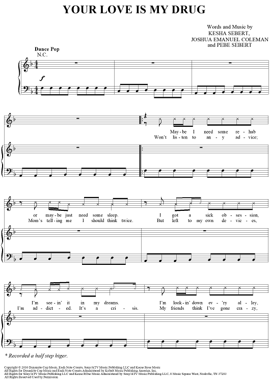 Digital Sheet Music for Your Love Is My Drug by Kesha, Kesha Sebert, Ammo, Pebe Sebert scored for Piano/Vocal/Chords; id:412042