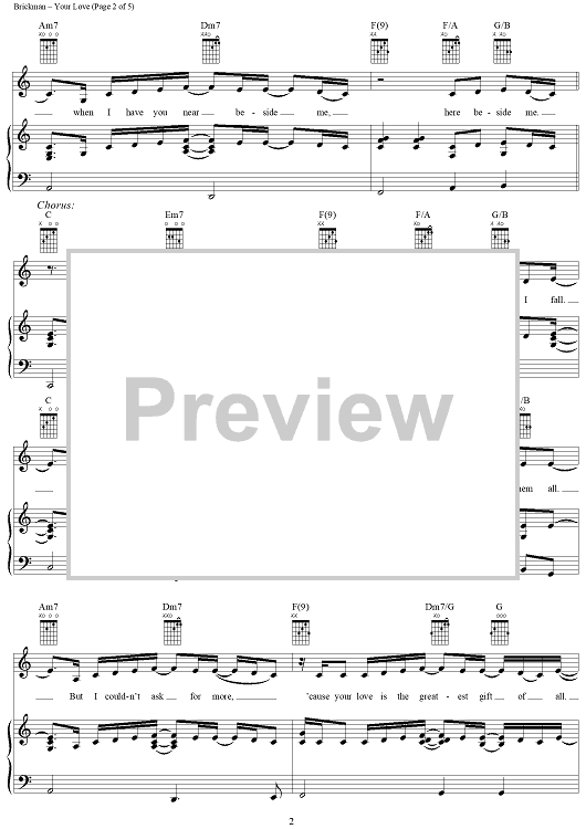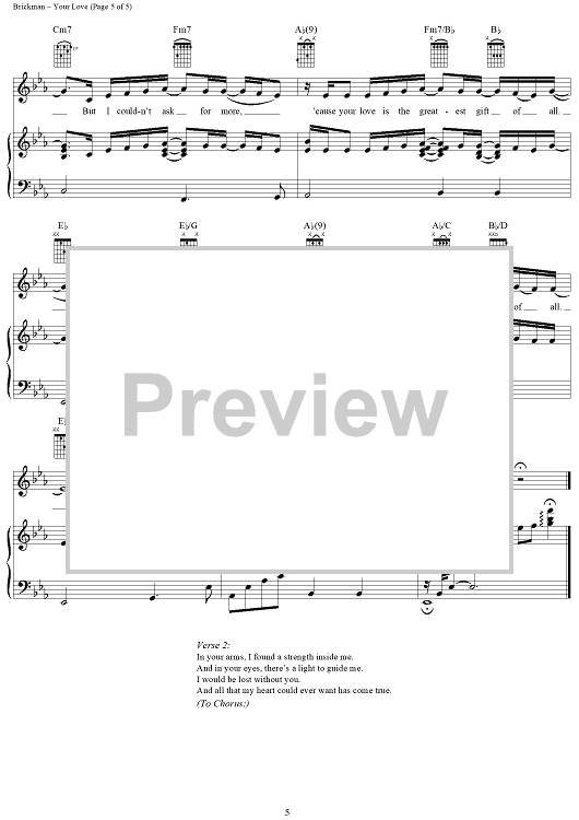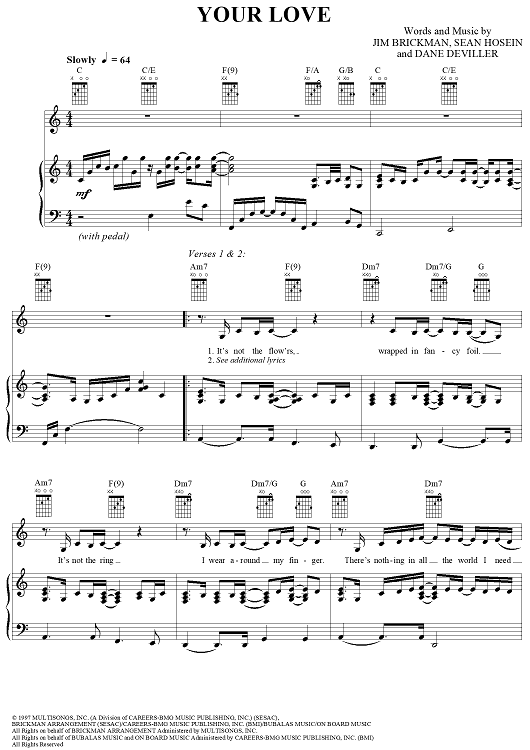 Digital Sheet Music for Your Love by Jim Brickman, Dane Deviller, Sean Hosein, Michelle Wright scored for Piano/Vocal/Chords; id:234773