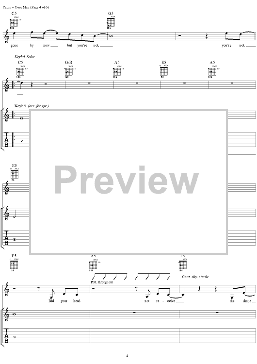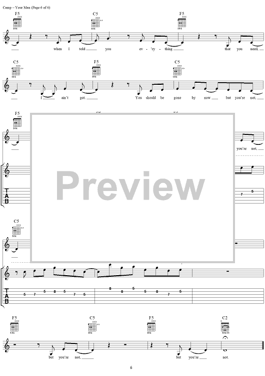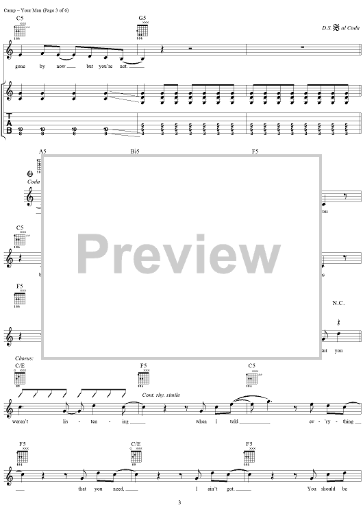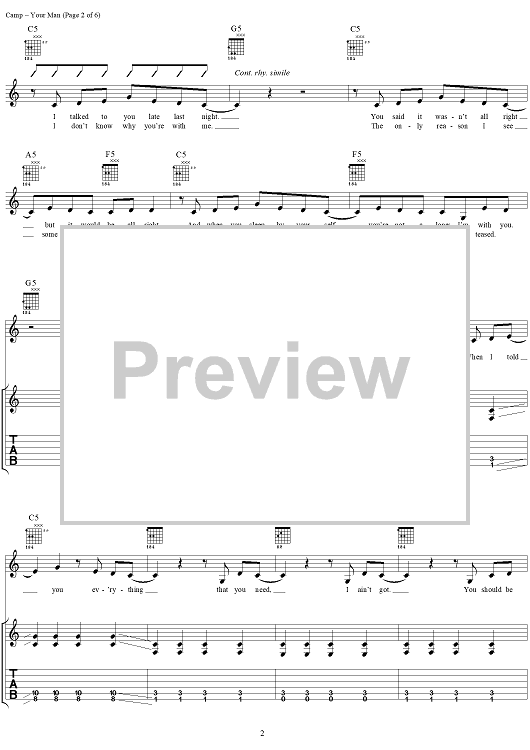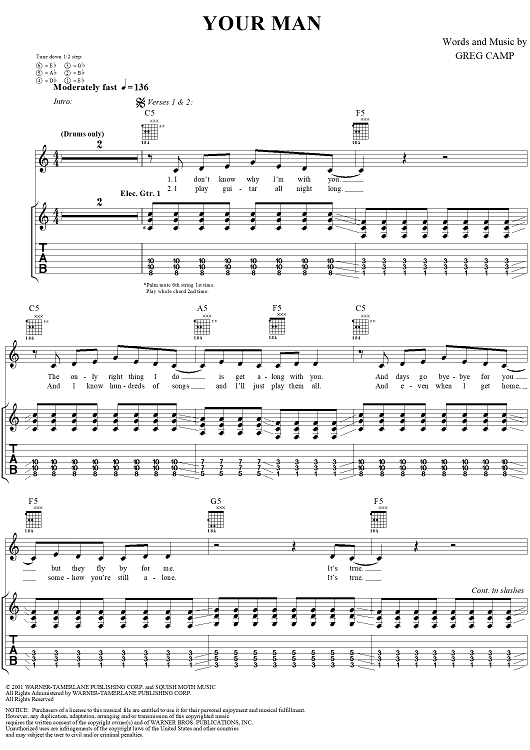 Digital Sheet Music for Your Man by Smash Mouth, Greg Camp scored for Guitar Tab/Vocal; id:288824