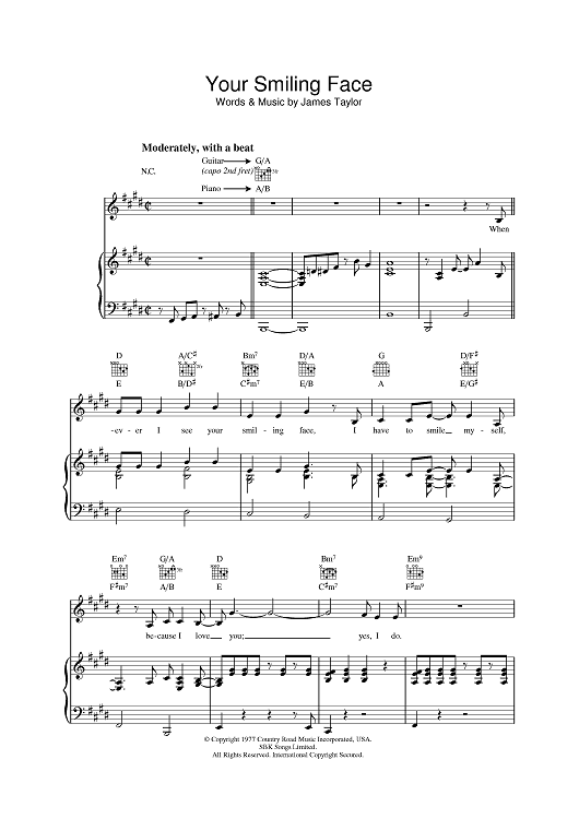 Digital Sheet Music for Your Smiling Face by James Taylor scored for Piano/Vocal/Chords; id:393363