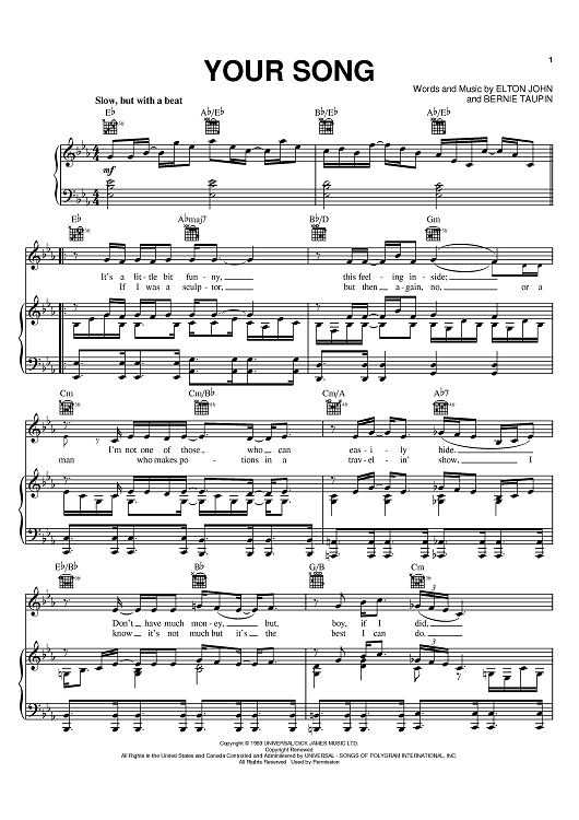 Digital Sheet Music for Your Song by Elton John, Rod Stewart, Bernie Taupin, Ewan McGregor scored for Piano/Vocal/Chords; id:381050