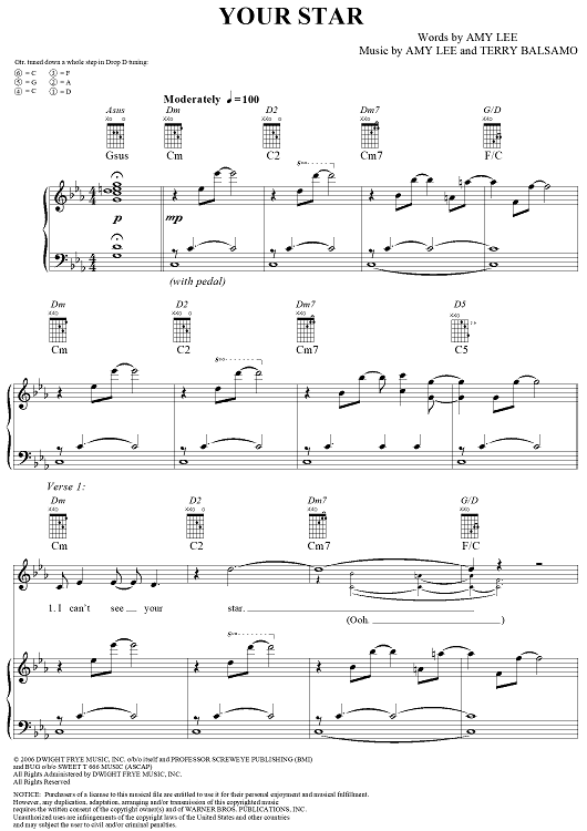 "Your Star" Sheet Music by Evanescence