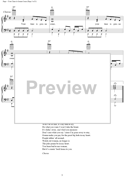 Digital Sheet Music for Your Time is Gonna Come by Jimmy Page, John Paul Jones, Led Zeppelin scored for Piano/Vocal/Chords; id:254249