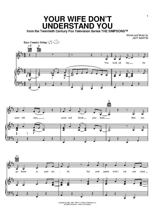 "Your Wife Don't Understand You" Sheet Music by Jeff Martin