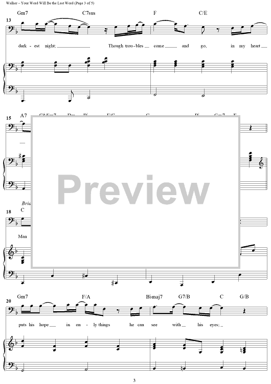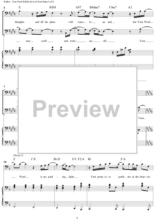 Digital Sheet Music for Your Word Will Be The Last Word by Tommy Walker scored for Mixed Chorus/Piano; id:308924