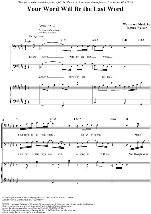 "Your Word Will Be The Last Word" Sheet Music by Tommy Walker