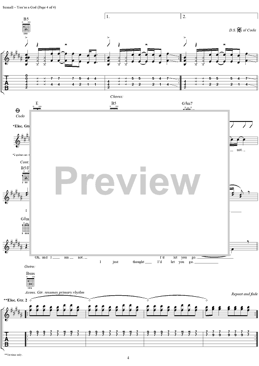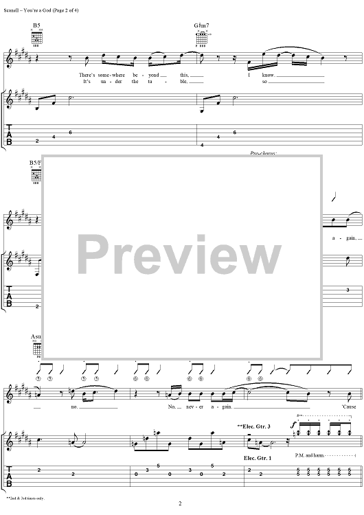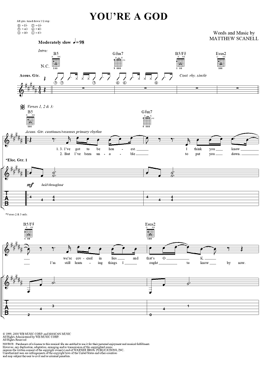 Digital Sheet Music for You're a God by Vertical Horizon, Mathew Scannell scored for Guitar Tab/Vocal; id:283497