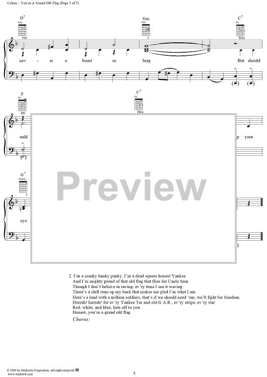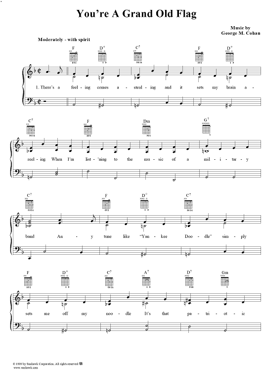 Digital Sheet Music for You're a Grand Old Flag by George M Cohan scored for Piano/Vocal; id:114192