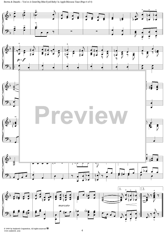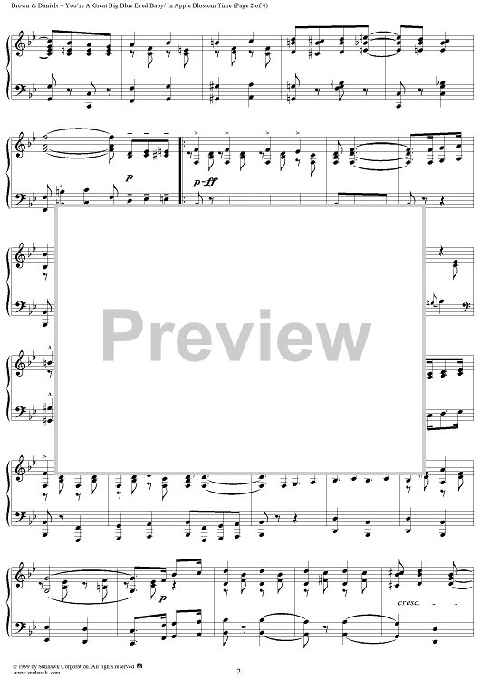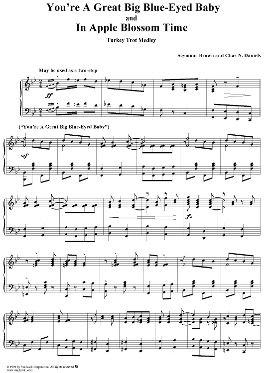 Digital Sheet Music for You're a Great Big Blue-Eyed Baby / In Apple Blossom Time by A. Seymour Brown, J. Bodewalt Lampe, Charles N. Daniels scored for Piano Solo; id:118435