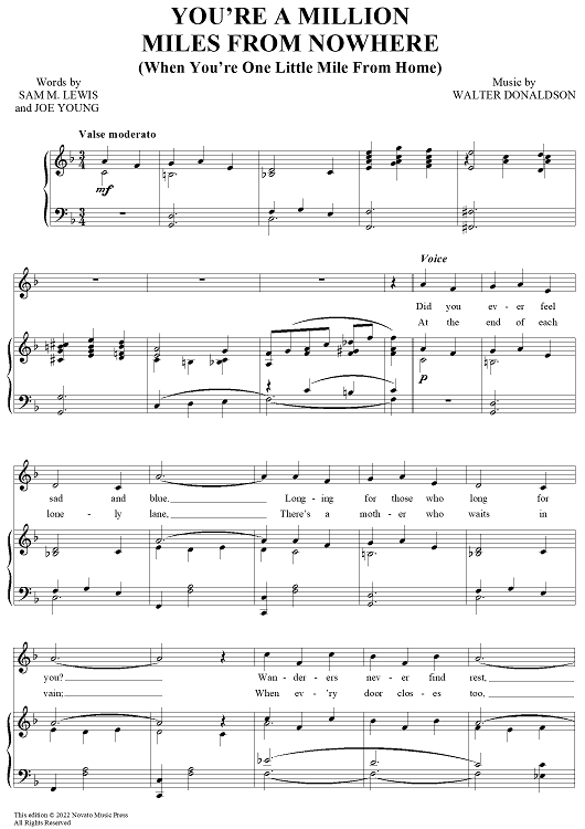 Digital Sheet Music for You're a Million Miles From Nowhere by Walter Donaldson scored for Piano/Vocal; id:263036