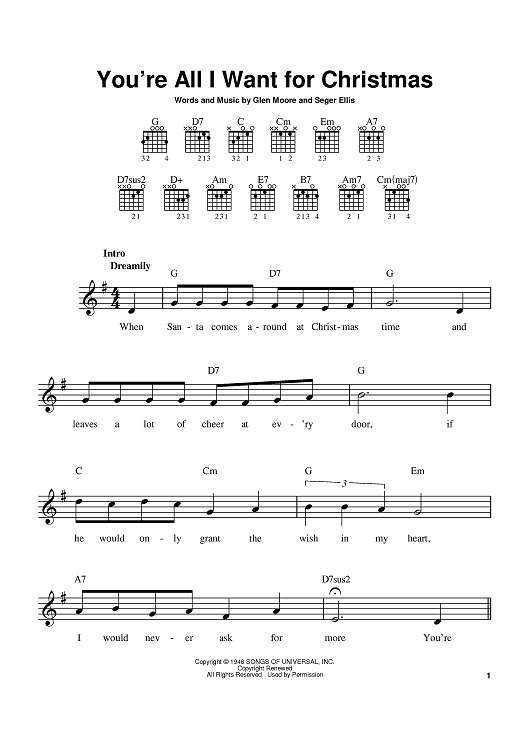Digital Sheet Music for You're All I Want For Christmas by Brook Benton, Glen Moore, Seger Ellis scored for Easy Guitar; id:384686