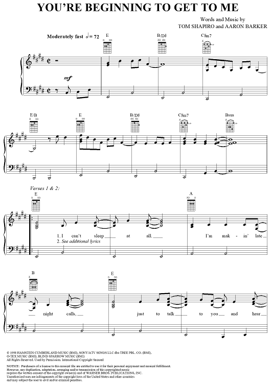 Digital Sheet Music for You're Beginning To Get To Me by Clay Walker, Aaron Barker, Tom Shapiro scored for Piano/Vocal/Chords; id:234666