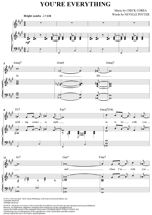 Digital Sheet Music for You're Everything by Chick Corea, Neville Potter scored for Piano/Vocal/Chords; id:292227