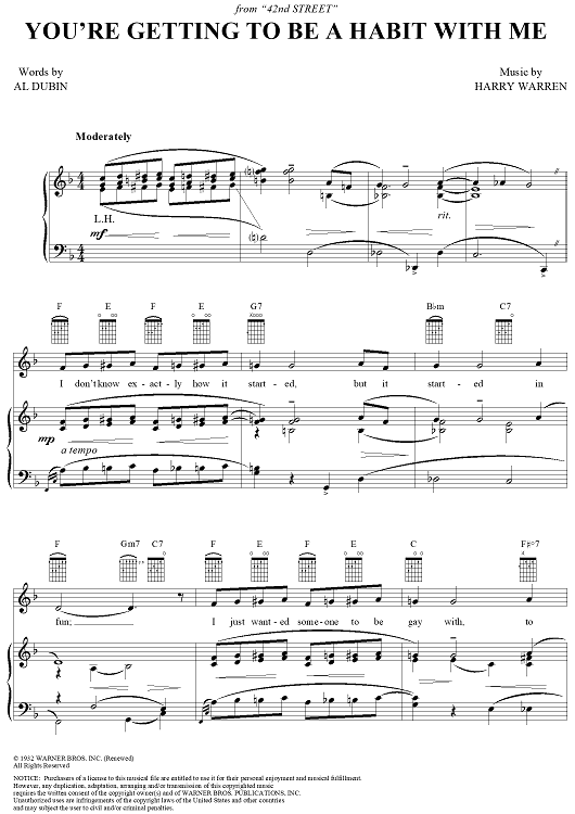 Digital Sheet Music for You're Getting To Be A Habit With Me by Harry Warren, Al Dubin, Doris Day scored for Piano/Vocal/Chords; id:112895