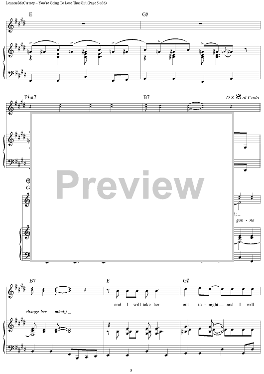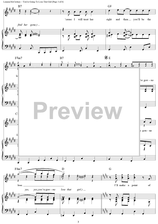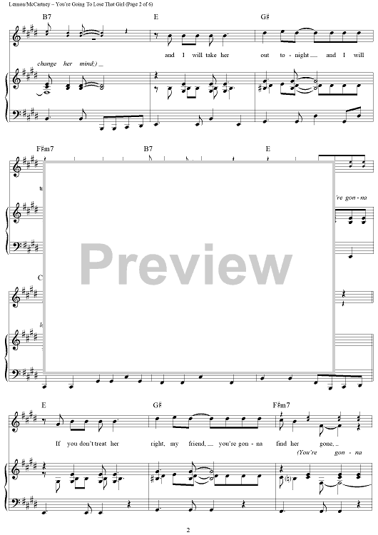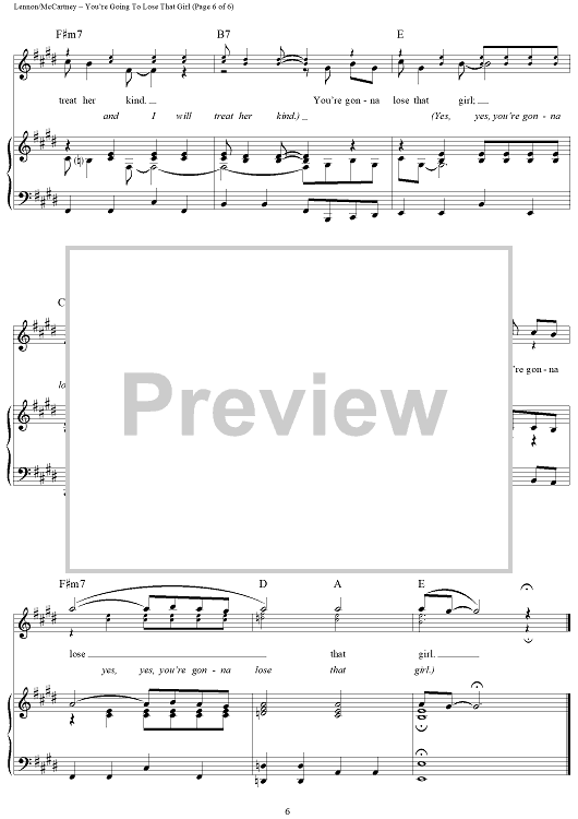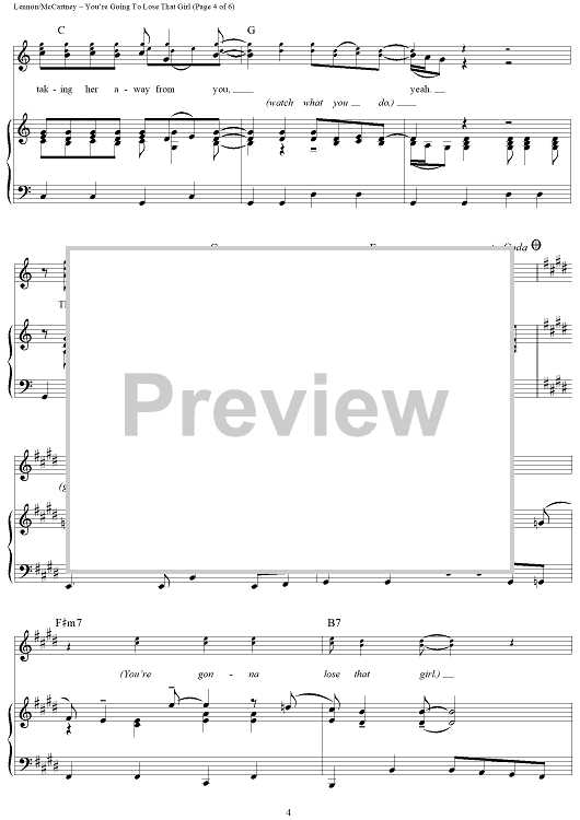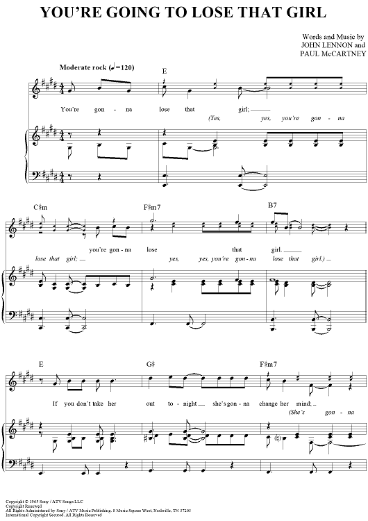 Digital Sheet Music for You're Going to Lose That Girl by Paul McCartney, The Beatles, John Lennon scored for Piano/Vocal/Chords; id:365002