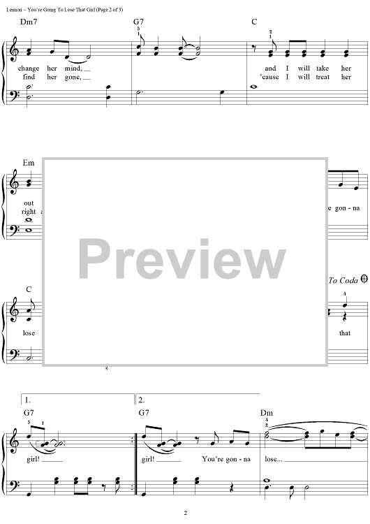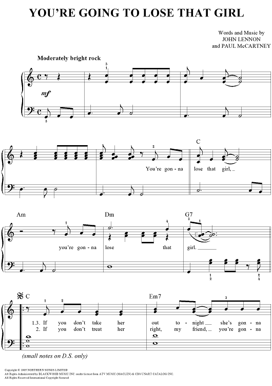 Digital Sheet Music for You're Going To Lose That Girl by Paul McCartney, The Beatles, John Lennon scored for Easy Piano/Vocal/Chords; id:452035