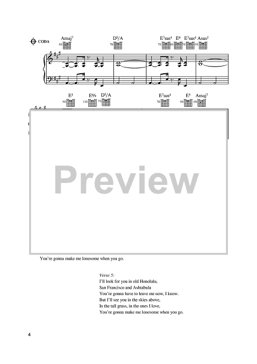 Digital Sheet Music for You're Gonna Make Me Lonesome When You Go by Bob Dylan, Madeleine Peyroux scored for Piano/Vocal/Chords; id:386934