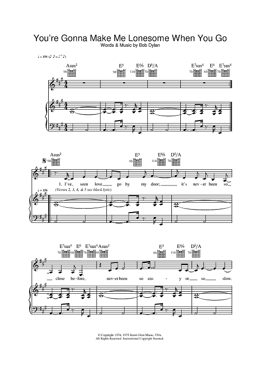 "You're Gonna Make Me Lonesome When You Go" Sheet Music by Bob Dylan