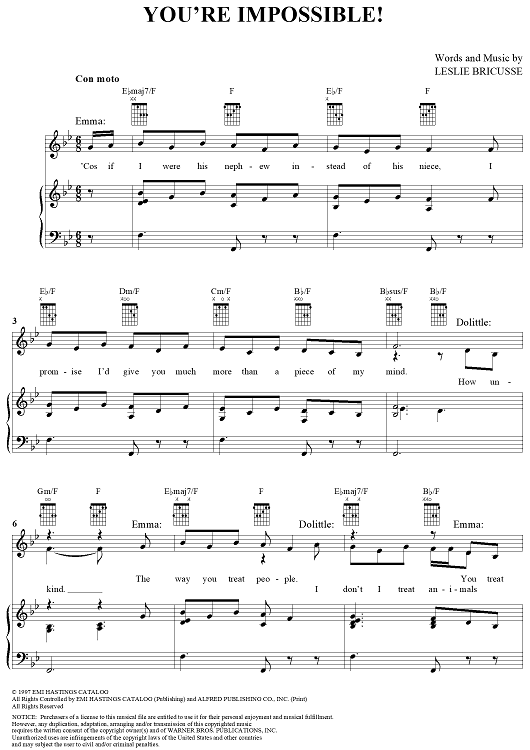 "You're Impossible!" Sheet Music by Leslie Bricusse