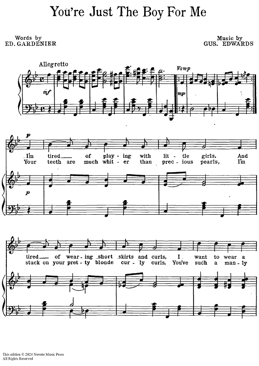 Digital Sheet Music for You're Just The Boy For Me by Gus Edwards, Ed. Gardenier scored for Piano/Vocal; id:423238