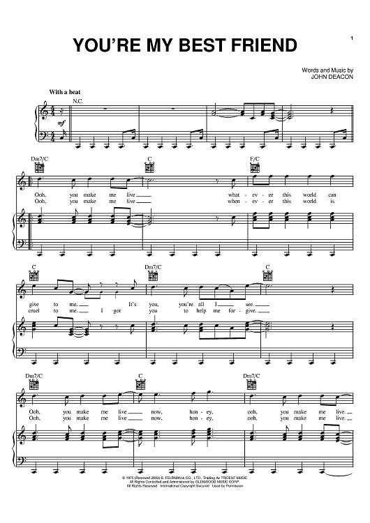 Digital Sheet Music for You're My Best Friend by Queen, John Deacon scored for Piano/Vocal/Chords; id:395417