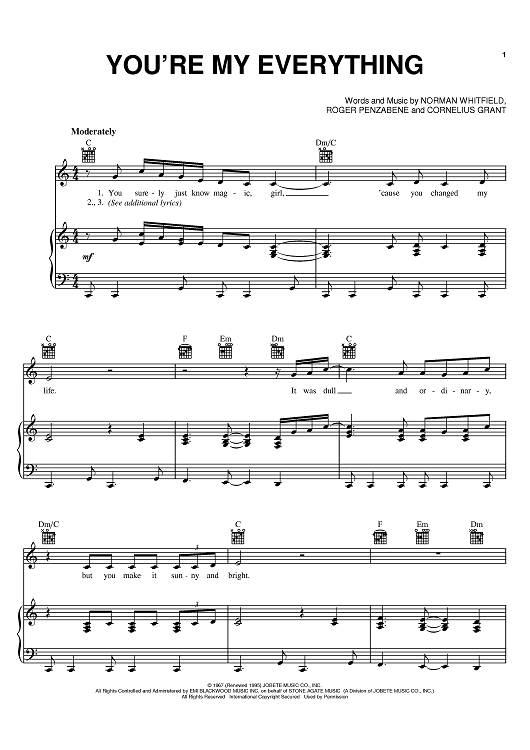 Digital Sheet Music for You're My Everything by Norman Jesse Whitfield, Cornelius Grant, Roger Penzabene, The Temptations scored for Piano/Vocal/Chords; id:389727