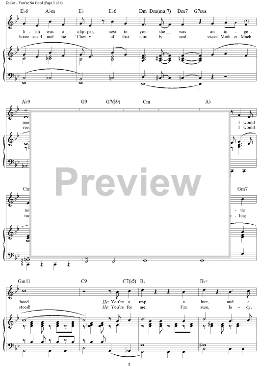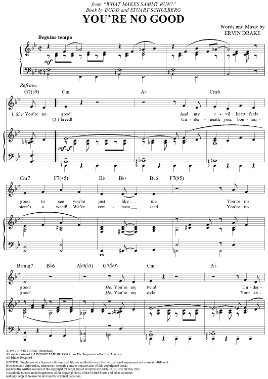 Digital Sheet Music for You're No Good by Ervin Drake scored for Piano/Vocal/Chords; id:313549