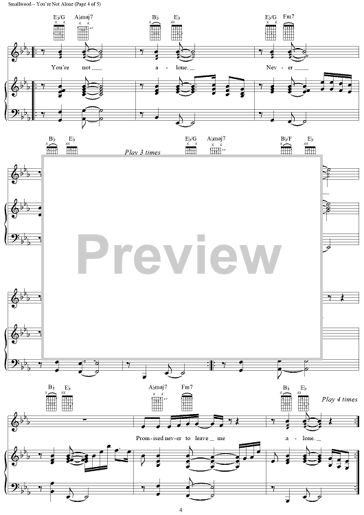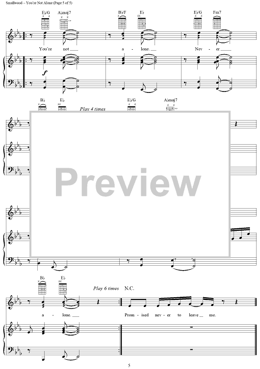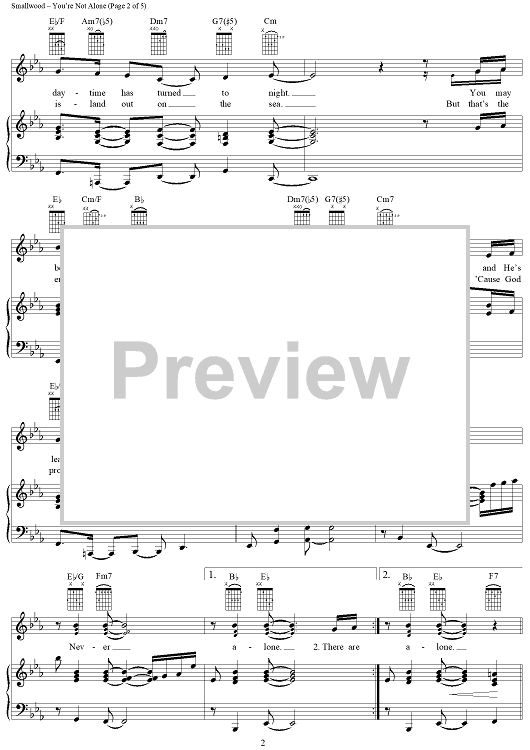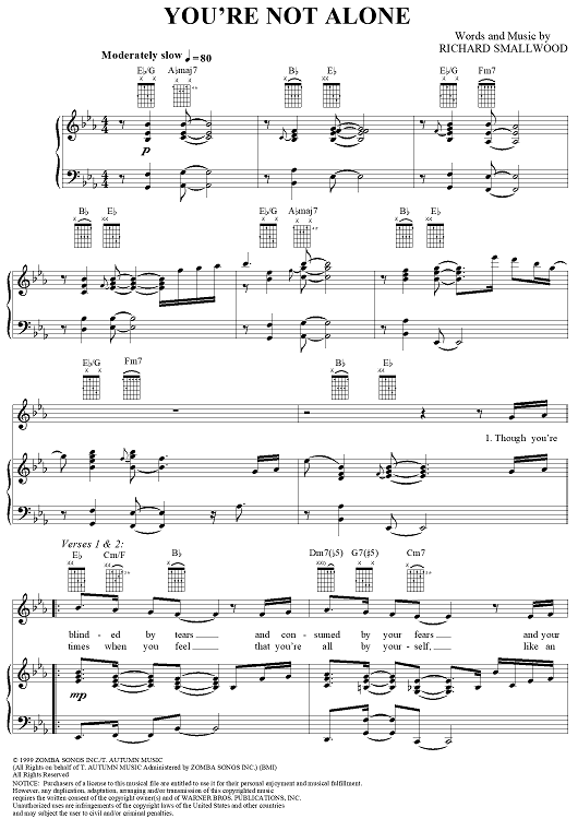 Digital Sheet Music for You're Not Alone by Vision, Richard Smallwood scored for Piano/Vocal/Chords; id:120852