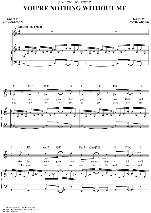 Digital Sheet Music for You're Nothing Without Me by Cy Coleman, David Zippel scored for Piano/Vocal/Chords; id:111884