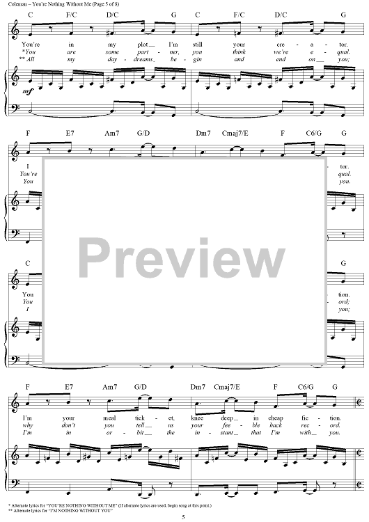 "You're Nothing Without Me" Sheet Music by Cy Coleman