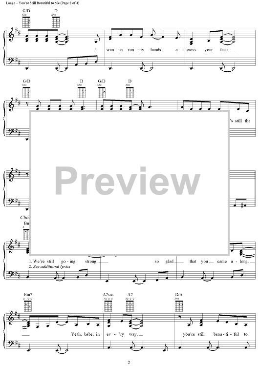 Digital Sheet Music for You're Still Beautiful to Me by Bryan Adams, Bryan White, Robert Lange scored for Piano/Vocal/Chords; id:126870
