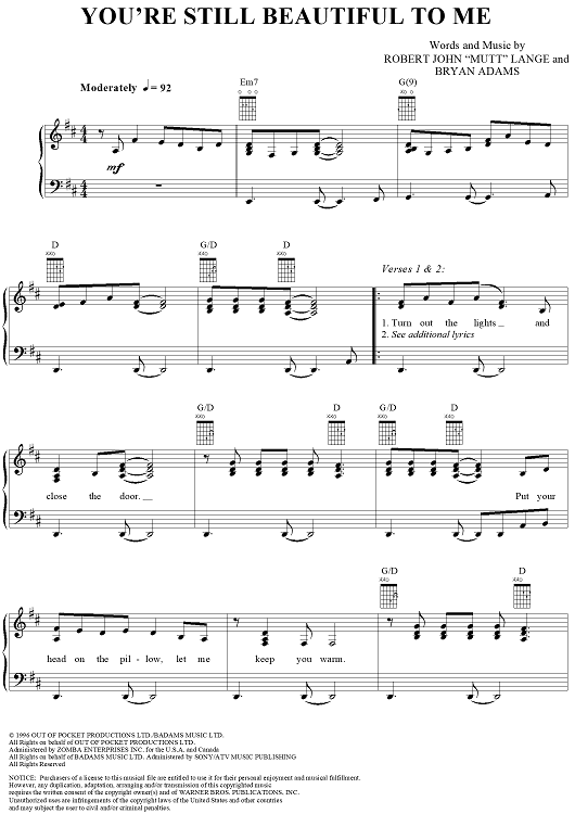 "You're Still Beautiful to Me" Sheet Music by Bryan Adams