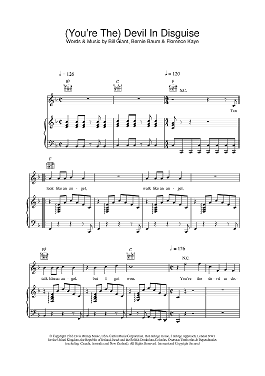 Digital Sheet Music for (You're The) Devil In Disguise by Elvis Presley scored for Piano/Vocal/Chords; id:378726