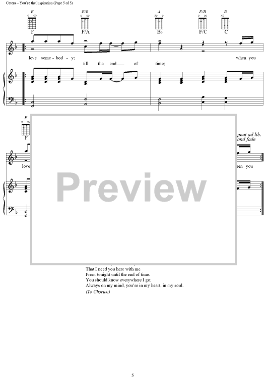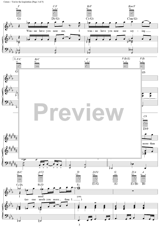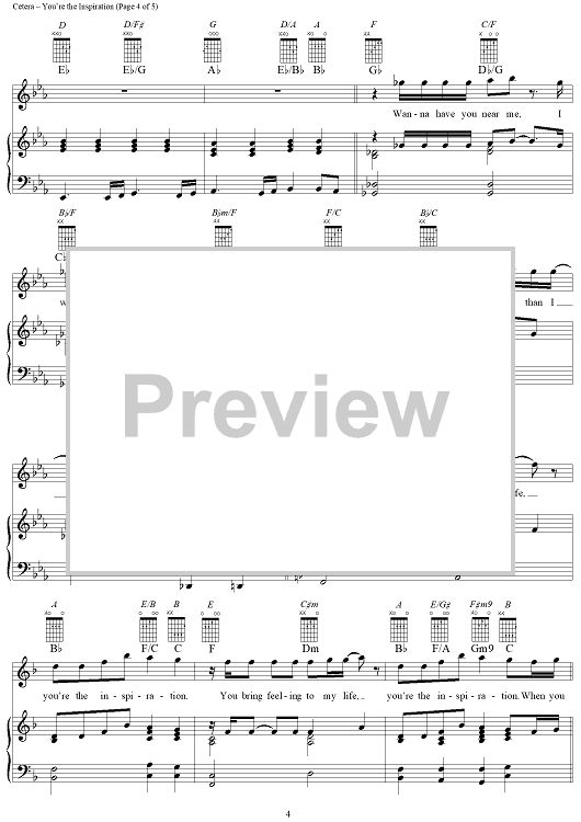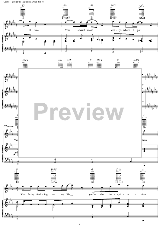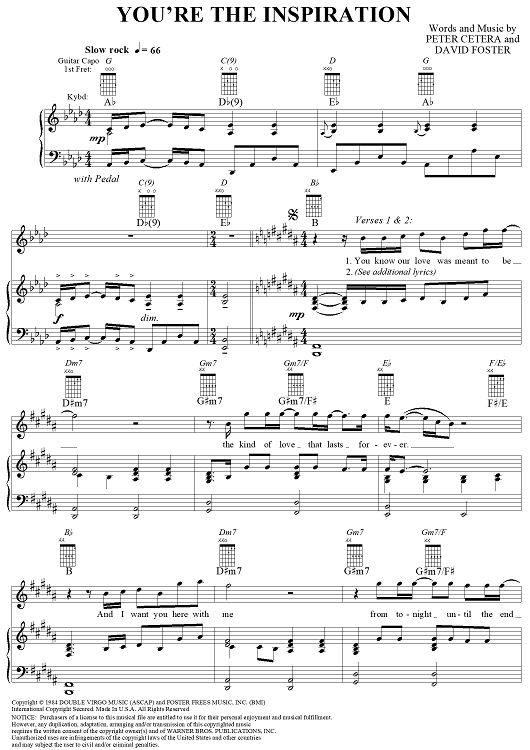 Digital Sheet Music for You're The Inspiration by Peter Cetera, David Foster scored for Piano/Vocal/Chords; id:154960