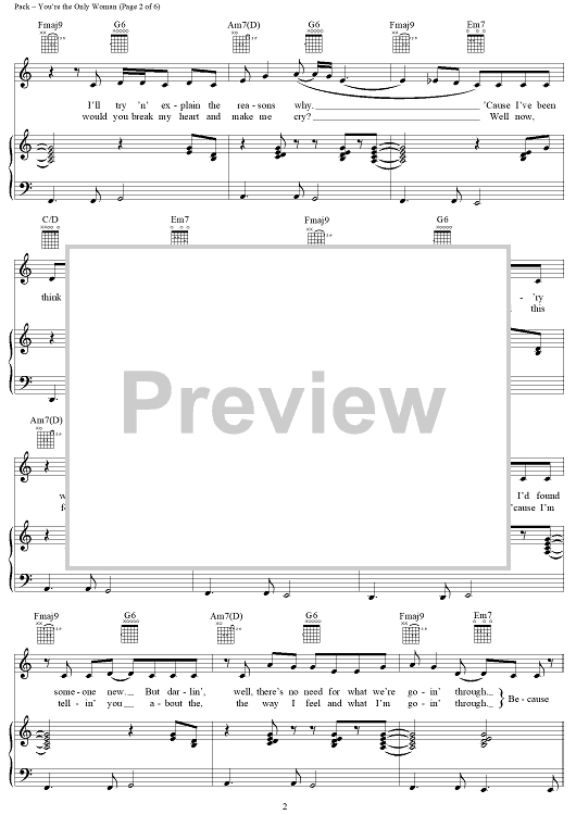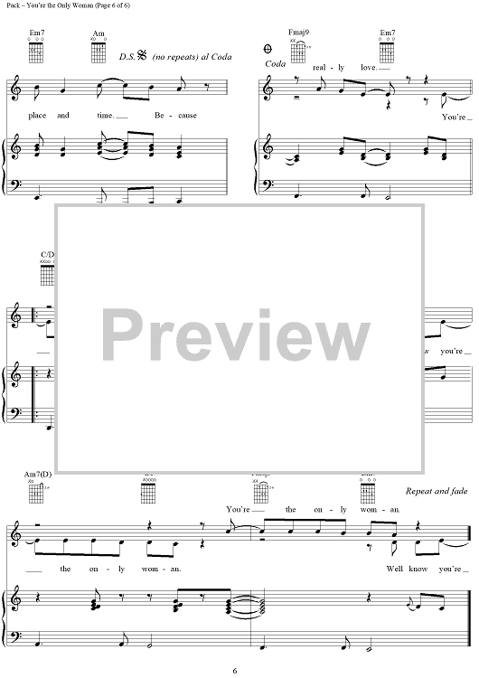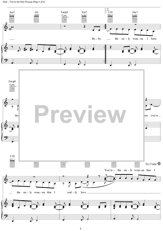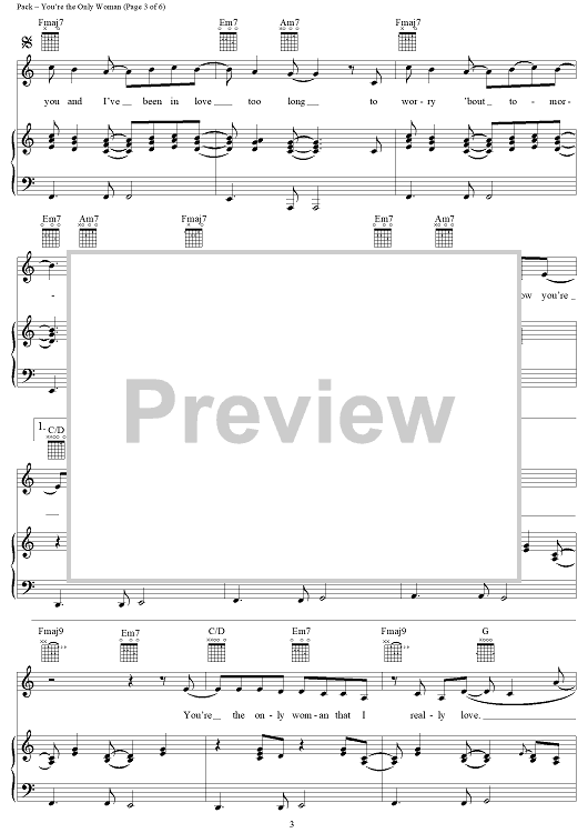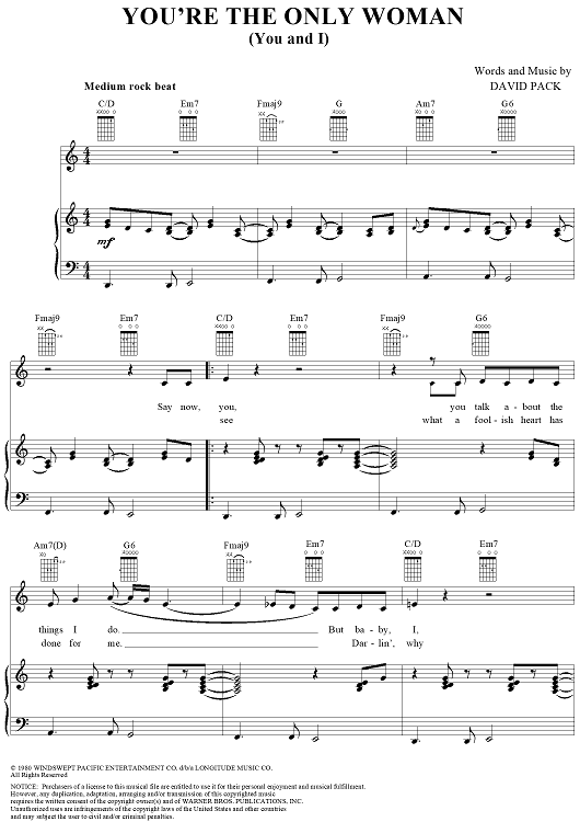 Digital Sheet Music for You're the Only Woman (You and I) by Ambrosia, David Pack scored for Piano/Vocal/Chords; id:118074