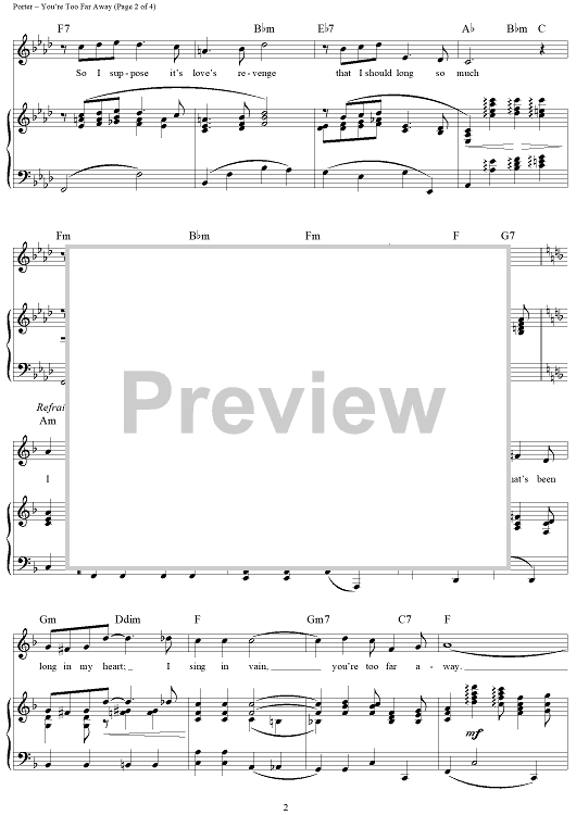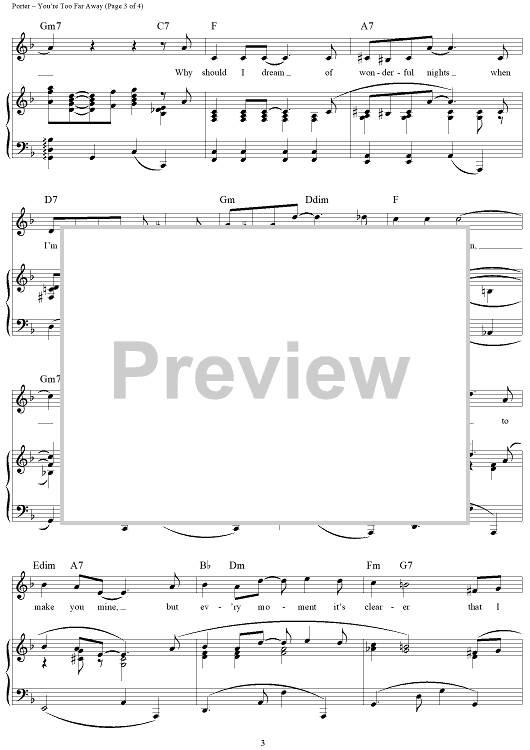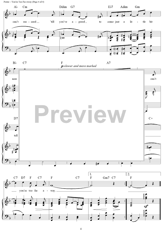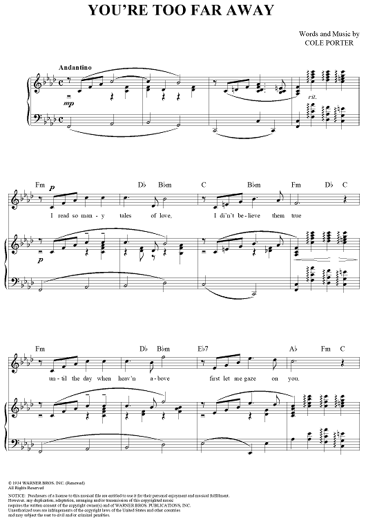 Digital Sheet Music for You're Too Far Away by Cole Porter scored for Piano/Vocal/Chords; id:316512