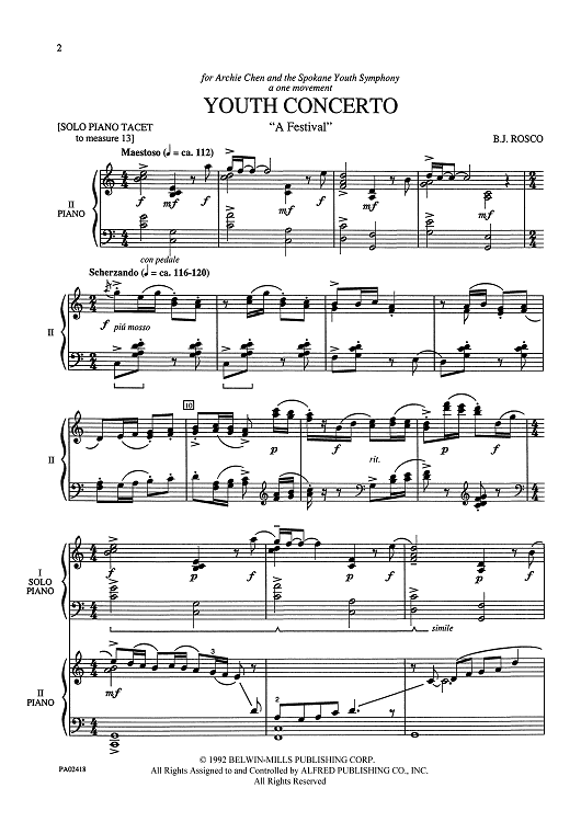 "Youth Concerto "A Festival"" Sheet Music by B. J. Rosco