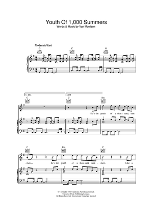 Digital Sheet Music for Youth Of 1000 Summers by Van Morrison scored for Piano/Vocal/Chords; id:386937